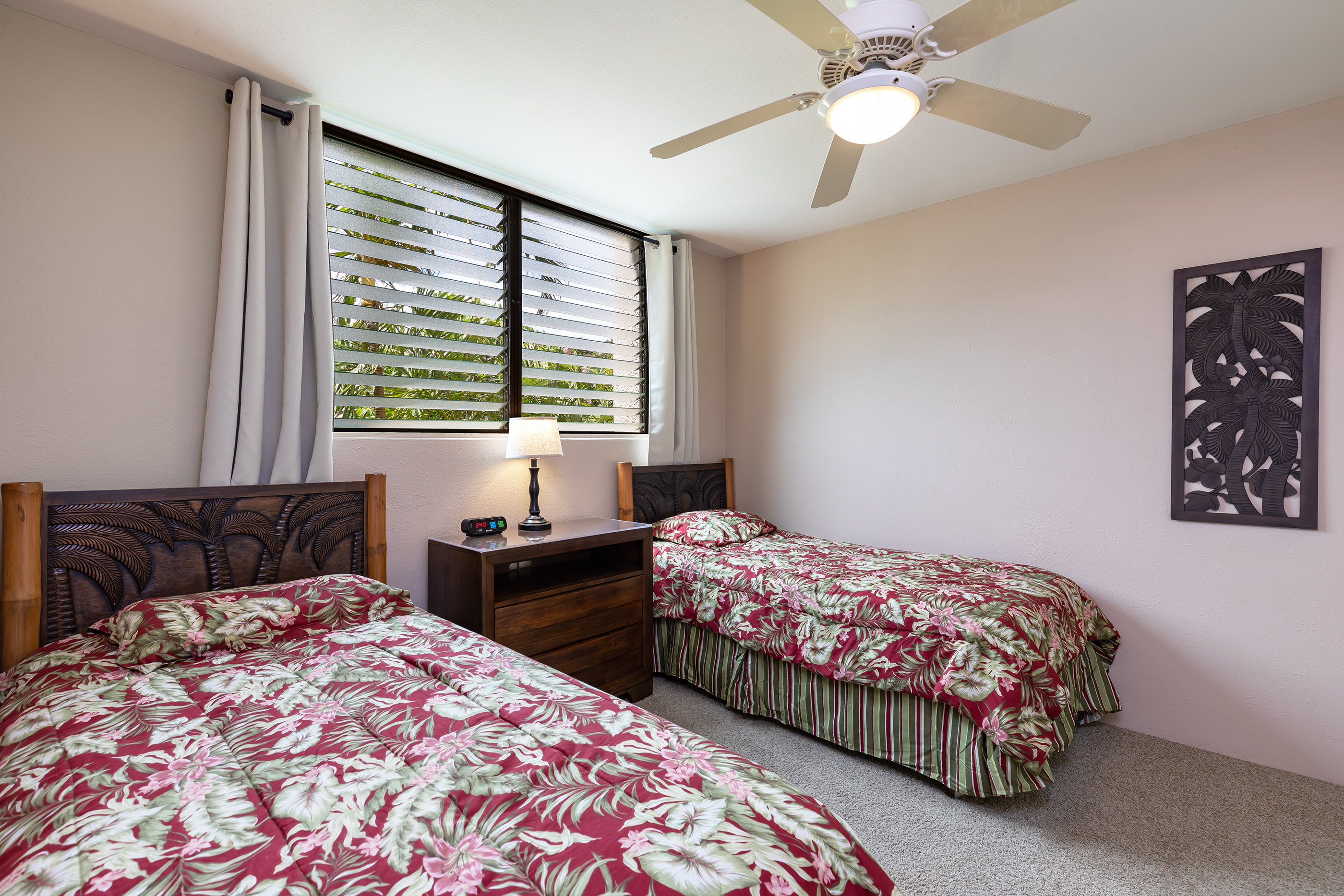 Spacious second bedroom with private garden outlook and cooling trade winds.